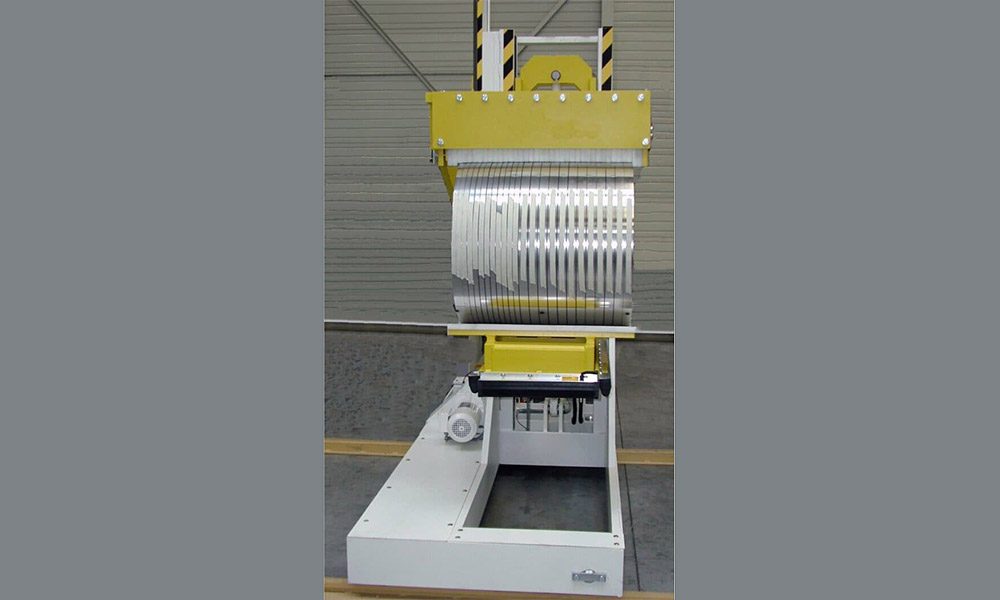 코일 언로딩 시스템은 감긴 코일을 디코일러에서 제거하는 데 사용됩니다. 작은 링 웨이트는 수동으로 또는 C-후크를 사용하여 제거합니다. 더 큰 코일 중량의 경우, b+s는 코일 언로딩 트롤리 및 개찰구와 같은 최적의 코일 언로딩 시스템을 공급합니다.