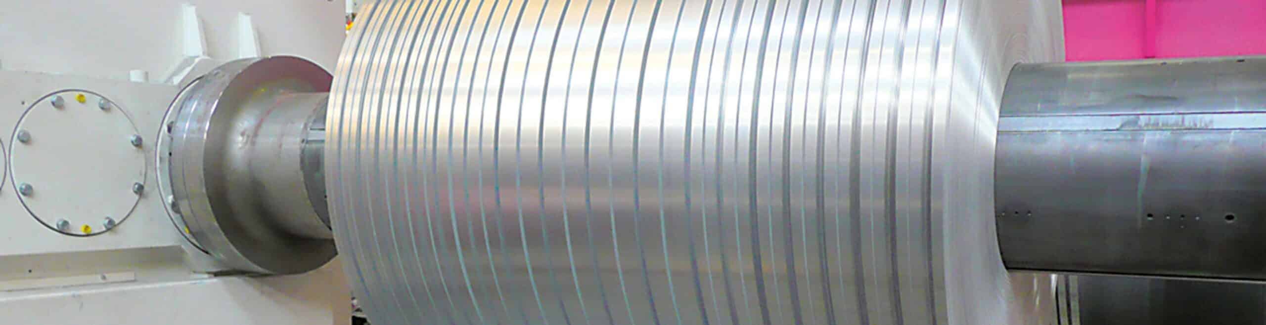 Die geschnittenen Streifen werden in einer Längsteilanlage zu einem Ring (Coil) aufgewickelt.